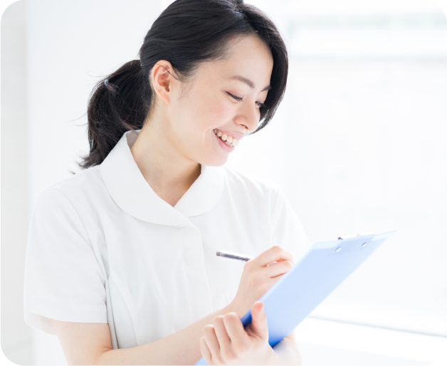 - (血圧や体温などの測定、乳房の状態、心身の健康状態等)