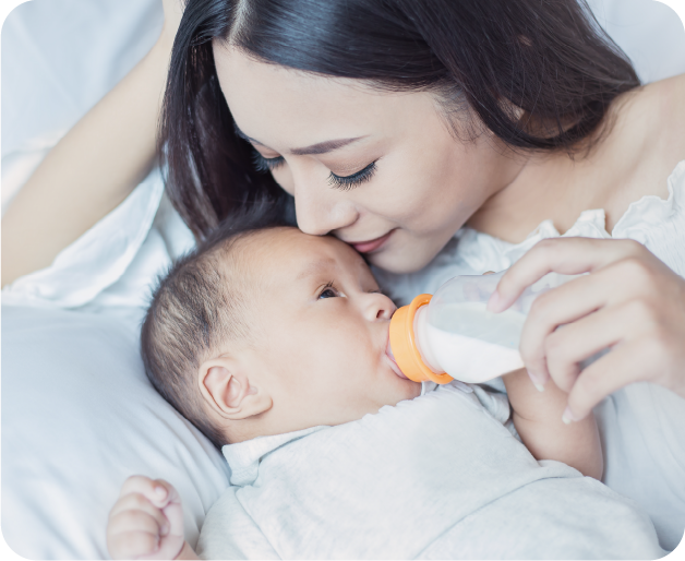 赤ちゃんはボトル授乳。助産師がお預かり中(オプション)。